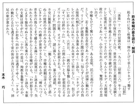 ○歌誌「短歌人」2021年9月号に関谷啓子氏による評論「鈴木幸輔の作品と人」